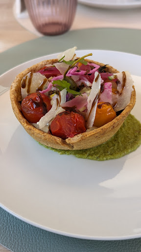 On avait réservé pour boire un verre et manger, en demandant si on pouvait rester longtemps. Réponse positive au téléphone, précisant qu'il y avait une terrasse pour boire un verre avant et après le service. Arrivés sur place on a bien vu un souci d'organisation.. On nous a demandé de changer de terrasse plusieurs fois, avant d'entendre "non, c'est bon, ils mangent". Nous avons failli partir, mais n'étant pas embêtants, nous avons voulu leur donner une chance. Beaucoup de monde refusé pour boire un coup en pleine canicule (alors qu'il y a la place et le personnel en nombre suffisant). Ceux qui ont pu juste boire un coup ont dû aller au bar passer commande, payer et porter eux-mêmes leur plateau jusqu'à la terrasse d'à côté. N'espérez pas boire un coup à l'intérieur avant midi, même si vous mangez sur place, ce n'est pas un bar restaurant comme il est noté mais simplement un restaurant. Un changement d'appellation enlèverai bien des soucis.. Il y a un ventilateur brumisateur sur la terrasse qui n'est allumé qu'à partir de midi. Nourriture pas mauvaise mais ne vaut pas le prix (25 euros la salade Cesar qui baigne dans la sauce). Le menu entrée/plat/dessert à 39 euros en vaudrait plutôt 20. Le dessert à 10 euros c'est clairement du vol (le financier à la fraise qui n'est en fait qu'une montagne de Chantilly avec une fine couche de gâteau façon financier et quelques fraises sans goût). L'entrée nous a donné de l'espoir : burratarte très bonne, malgré la pâte qui n'est pas maison, mais le reste n'était pas à la hauteur. Purée de courgettes fade, magret découpé dans la longueur (première fois que je vois ça). Étant du métier,je peux assurer que le service était très désorganisé,et certainement un manque de communication en amont (je rappelle que nous avions tout prévu par téléphone au moment de la réservation, mais seule la personne au téléphone semblait être au courant des demandes que nous avions faites). Arrivés en premier, entrée froide qui a été servie à d'autres tables avant nous. Il ne faut pas mettre trop longtemps à manger sinon on sent bien qu'on dérange. Il y a la clim dans la salle, mais une fenêtre reste ouverte en permanence pour faire passer le fil du ventilateur extérieur.. Autre détail : lors de la prise de commande d'un menu enfant (donc plat/dessert) à une table où il y a des entrées, il peut être judicieux de demander si l'enfant veut son plat en même temps que les entrées ou s'il veut regarder les autres manger en attendant son plat. Et pas besoin de demander toutes les 2 minutes si tout va bien. Point positif : on a demandé un changement de garniture pour le menu enfant qui a été accepté (même si arrivé trop salé). La motivation, la gentillesse et la sympathie de l'équipe du service ne suffit pas à enlever l'impression d'être dans un repaire de Muridés.