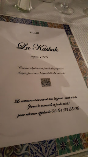 Lovely restaurant showcasing North African specifically Algerian cuisine. It's tucked away through a small tunnel so it took me a bit to find it. The restaurant was packed and buzzing for dinner service. The decor is tastefully done showing the cultural wares from the region. The food was excellent and so filling! A small bowl of spicy well seasoned olives and peppers were placed on the table and soon as I was seated. Since I have never had this cuisine, I allowed my server to suggest dishes to sample. I tried the Felfel Mechouia for a starter which is marinated peppers served with bread, hot sauce and a side salad. So delicious, and almost felt like an entree. Then I had the Tagine Kasbah with lamb, apricots, figs and walnuts served with a generous portion of couscous. I've never had anything like this dish. Savory and sweet, it was truly a wonderful entree. I was given a sample of Turkish Delight to end the meal. I had always wanted to try this dessert and I was truly "delighted" by it. It tastes like roses and powdered sugar. A great way to finish the meal. After, a small glass of the best mint tea I've ever had, I left La Kasbah completely stuffed and content. Special thanks to my server Hamza who took care of me and made the best suggestions! The service he provided was top notch and made my dining experience one of the best I've...