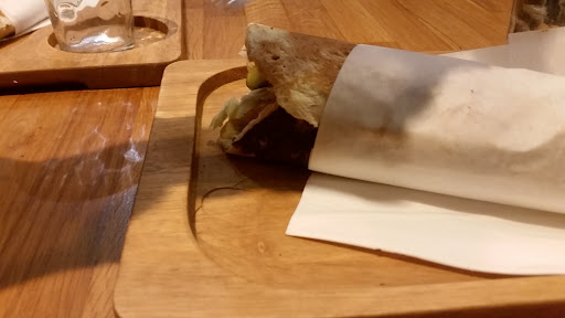 I took the galette shawarma, which was OK, but not a reason to come back, the meat was just poor quality (and more boiled than grilled), and nowhere near as tasty as other Lebanese food I've had. The galette had quite some liquid too, I guess from the poor meat. Can't pay contactless, and there's no sign saying so. Could be embarrassing. On the plus side, I got the only front window table, so that's just perfect for people watching. Nice and warm on a really cold day, and...