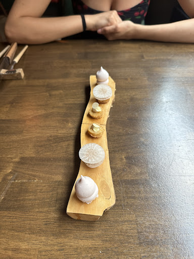 As a single guest you always hope for a special place in the restaurant and that you don't have to wait too long for the different courses. This was excellently arranged for both in this restaurant, I got a kind of chef's table spot and all the staff visibly enjoyed making my evening unforgettable. The chef was very informative about the dishes, and the sommelier showed enthusiasm when she explained and substantiated her wine pairing. The guts and creativity she showed by, for example, serving a beautiful Sake with the dessert was an example of this. The 8 courses were therefore all almost perfect.. Only the chef could show a little more guts by, for example, not opting for the safe and oh-so well-known filet mignon but opt ââfor sweetbreads or even andouiette, in any case something less safe. The fish dish lacked the acidity of, for example, lemon or lime.. but tangerine or even Yuzu would make this dish perfect for me. All in all the greatest culinary adventure and highly...