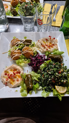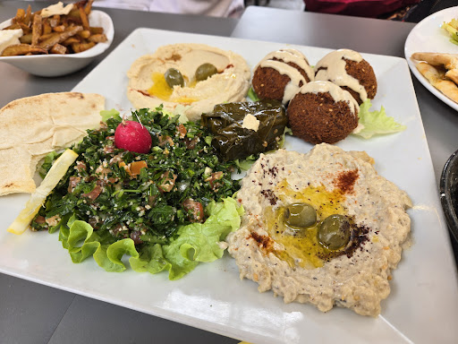 Food wasn't so good and quite expensive. 15 euro for a plate of mix starters (seen in picture) was definitely not worth the money. Very small portion of hommus mutabal and tons of toubleh (they probably had extra stock). The falafel was ridiculous, it was tasteless, and wasn't cooked properly inside, and the falafels were made from the instant falafel mix. Very disappointed. The manakish completely lacked zatar and also tasteless, with a very little sauce, the owner should walk the road to Osaj and see what a real manakish is like, theirs is full of flavour and Ingridents, so dispointing considering they make a fresh bread with a oven, there is potential. Even the fries were cold. And once we finished they didn't even clear out the plates for 2hours or asked if we want dessert. Won't be returning for sure considering there are other good Lebanese in the area for cheaper.