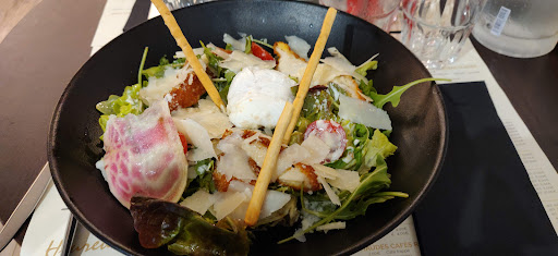 Read moreNous aurions dû tourner en caméra cachée...ce fut un sketch du début à la fin ... Merci ça nous a fait une vraie pause ! Réservation nickel pas de souci Jolie table ronde pour 6 Menu... à peine la pancarte posée on nous demande si on a fait notre choix..euh non on a pas lu Prise de commande pas spécialement aimable et sans conseils Service...piou entre les serveurs qui se lancent des pics ou nous prennent à partie et leur énervement qui se ressent dans leur façon de servir ou débarrasser...peu efficace et embarrassante. On a dû demander des couverts, du pain, de l'eau.. Portion parfois généreuse parfois réduite...oui un bar n'a habituellement pas la taille d'un maquereau alors c'est mieux d'être prévenu dans ce cas là. Mention très bien pour le café gourmand tout semblait maison. ..si ça avait été écrit j'en aurais pris un vu qu'il était délicieux celui de ma collègue. En résumé prix élevé pour un midi à ce standing...prenez du personnel qualifié déjà pour le service et là on trouvera les...