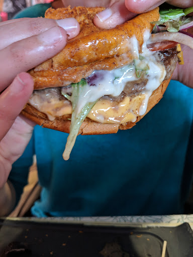 We were greeted with smiles, and we seated immediately a Saturday, 14h, for two, PRETTY GOOD! My girlfriend and I ordered and were served our hot meal no more than 5min later. We were asked by a few of the staff if everything was to our liking, to which it was. It is not a fantastic burger but was a strong average, we had the "Pulled Pork" burger.