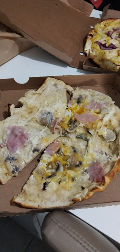 La pizza quand a elle était bien garnie mais baigné dans une flaque de gras ou d'huile qui a rendu la pate toute molle et elle était à moitié cuite au centre c'est vraiment pas top a la fin sérieux !