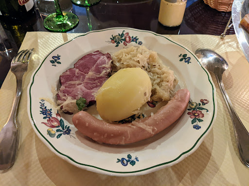 Read moreYou enter through a little red door an the smell of the Munster cheese hits you right in the face. A very nice lady welcomes you and makes you feel like the special guest to her dinner party at home. The menu has a lot of options so if you want a sure thing, you should try the Choucroute Vent D'est (the house special) and Cordon Bleu au Munster👌 The Gewürztraminer wine, fruity and aromatic, is the cherry on top to pair the dishes. Food preparation takes its time so be patient,...