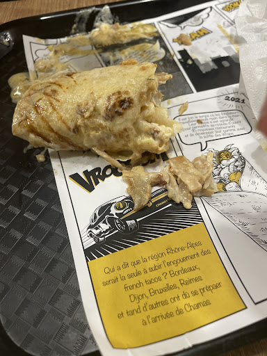 Read morePersonnel aigri et nonchalant, une fois installés à table (avec vu sur le mur dégoulinant de sauce !?) Nous nous sommes fait rappeler à l'ordre, je cite "On baisse d'un ton là haut" alors que nous parlions simplement, et ce plusieurs fois. À noter que le Chamas était vide, nous étions les seuls clients. Je pense également que 2 bacs de déchets distincts (cannettes et cartons) serait nécessaire pour le recyclage. De plus le système de réductions/promotions sur les menus est injuste, il faut être en possession d'un papier distribué aléatoirement dans les rues de Tournon afin d'en bénéficier. C'est plutôt anormal que certaines personnes bénéficies de réductions et d'autres non, par manque de chance... Aussi le "menu" comprend seulement le tacos et la boisson, ne comprend pas les frites qui sont à...