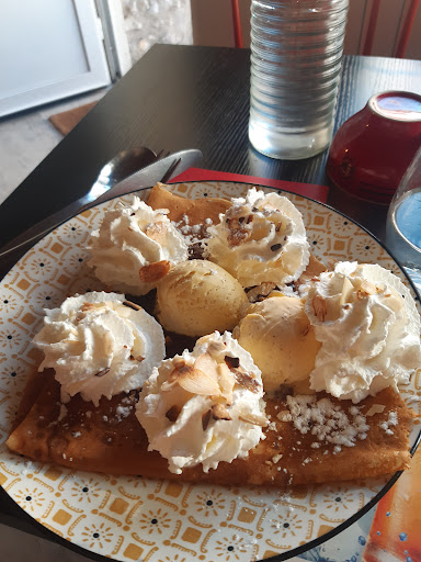 Read moreLa crêperie surprend quand on la voit car si loin de la Bretagne on peut douter de la qualité. Non, on y mange bien tout de même. Rien de mirobolant, mais c'est conviviale. On aurait aimé goûter le menu à 14.50€ plat / dessert / café avant de se rendre compte que c'est qu'en semaine. On se rabat donc sur des crêpes à 8€/unité contenant 3 ingrédients. On apprécie les champignons frais mais on regrette le chèvre qui a un drôle de goût d'eau... Côté desserts rien à signaler, c'est bon mais on est sur des classiques aussi. À noter : malgré avoir réservé notre commande à été prise après 2 autres tables arrivées après. P.S.: un café oublié de servir, erreur d'attention du serveur qui d'ailleurs n'est pas...