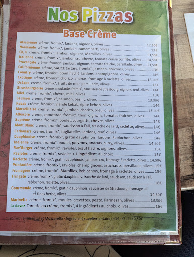 je mets une etoile car on est obligé d en mettre une... je viens de vivre la pire experience de pizza de ma vie...j en ai mangé 1 quart et j ai jeté le reste Du gras, du gras....j ai utilisé 8 serviettes en papier pour eponger tout le gras qui briller sur la pizza...mon carton de pizza imbibé de gras....ca m a meme salit mon pantalon car j ai essayé de la manger dans ma voiture. Olives degueux en bocal Aucun gout a part celui du gras Aucun assaisonnement Des produits de la plus basse qualité Meme une pizza congelée de chez LIDL est meilleure... Etant commercial je mange beaucoup de pizza a differents endroits et je confirme que c est la plus degueu que j ai mangé (1/4). Ce ne sont pas des pros de la restauration, aucun doute.... Pour info j ai mangé une canibale, premiere fois que je voie qu on mets cet espece de mix de fromage degeux sous le jambon, la viande hachee et les lardons.. Essayez de mettre le fromage par dessus ca cachera un peu la misere...