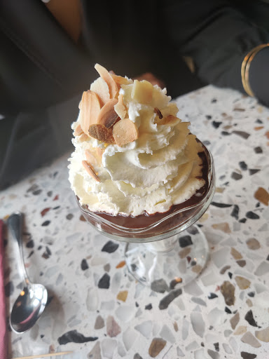 Eh bien voilà nous avons dîné pour la 2e fois à La Cantine des Anges avant de terminer notre séjour en Ardèche. Nous avons choisi les mêmes plats que la première fois : Dos de cabillaud et ravioles au chèvre. Pour le dessert j'ai choisi la profiterole, oui la profiterole car il n'y en a qu'une mais format XXL : Chou croquant, grosse boule de glace vanille, le tout sur un océan de sauce chocolat faite maison et d'amandes effilées, un régal pour les gourmands. On est loin des classiques 3 profiteroles congelées au chou...