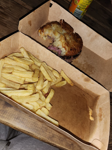 En ce qui concerne les plats, nous avons opté pour deux burgers : le pain semblait être sorti directement du congélateur et réchauffé (trop mou et humide, ce qui gâchait complètement le burger), la salade était surcuite (elle devrait être ajoutée après la cuisson) et le deuxième burger avait du fromage non fondu. J'ai déjà fait des burgers bien meilleurs moi-même. De plus, les frites étaient surgelées . Bien que le service ait été très rapide (servis en 5 minutes chrono), nous aurions préféré attendre 15 minutes de plus pour des plats de meilleure qualité. Il semble que cet établissement mise davantage sur l'attraction des touristes que sur la satisfaction de ses clients.