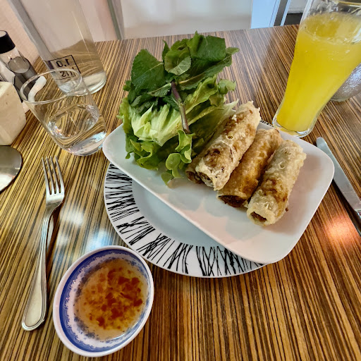 Read moreWenn man nach 3 Wochen Spanien mal was anderes essen möchte, ist man hier gut aufgehoben. Lobenswert weil schmackhaft die Vorspeisen hier: Frühlingsrollen (Nems) und Ravioli (gedünstete Teigtaschen) Leider hilft der Google Übersetzer nur bedingt weiter denn man muss sich für eine Sprache (Französisch) entscheiden, was bei bei der Hauptkomponente in der Hauptspeise hilfreich ist, aber nicht erklärt was genau man bekommt. Eine Karte auf Englisch war nicht vorhanden oder konnte nicht gefunden werden. Reis muss extra als Beilage bestellt werden, das haben wir umgangen in dem einer ein Nudelgericht bestellt hat (hier mit Huhn) und der andere ein Fleischgericht (Ente). Mir persönlich fehlte der Koriander bzw die im Vietnamesischen meist vielfach verwendeten Kräuter. So erinnert das Essen mehr an 08/15 Asiagerichte welche manch Lieferdienst besser hinbekommt. Portionen waren ausreichend, wenn auch nicht übermäßig viel. Ungefragt erhält man 1 Flasche stilles Wasser, welches umsonst war. Der Service war bemüht, wenngleich man den ersten Eindruck hatte zu stören/nicht willkommen zu sein. Alles in allem kein Lokal (welches eher steril/Bistroartig wirkte mit Plastikstühlen und Plastikblumen auf den Tischen) weswegen ich nochmal dort hin fahren würde, aber durchaus eine...