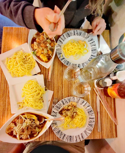 Read moreMalgré un service tout à fait aimable, il est regrettable que la nourriture soit une telle déception. Les essentiels sont ratés, que ce soit les nouilles ou le riz (les nouilles ont-elles même été achetées auprès de fournisseurs asiatiques ; trop d'eau ou sorti du cuiseur trop précocement), tandis que les plats baignent dans une sauce qui n'a jamais été réduite ou épaissie. En plus de saveurs vieillottes et arriérées, les plats souffrent d'une réelle incohérence avec un arrière-goût assez étrange. Les légumes sont réduits dans une bouillie par une cuisson vraisemblablement trop longue, les viandes sont tout aussi discutables. Il est surprenant que les plats ne ressemblent aucunement à ce qu'ils devraient être.