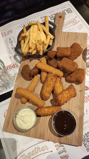 Read moreSuper déco et bonne ambiance malgrés une musique un peu trop forte. Nous ne sommes néanmoins pas tombés sur la bonne serveuse.. Sans doute pas assez bien formée ou bien trop stressée celle-ci a fait énormément d'erreurs sur nos commandes tout au long de la soirée.. Lors de la prise de commande elle a pris nos verres et nous as demandé nos plats.. certaines voulaient des entrées, mais non c'était trop tard elle n'allais pas tout effacer vu qu'elle avait commencé à prendre des plats.... l'une d'entre nous voulait de l'ice tea, sa réponse a été "nous n'en avons pas" aucun substitu soft n'a été proposé elle s'est retrouvée avec de l'eau...un verre pris en happy hour compté plein tarif.. arrivé de 11 verres et 10 burgers pour 9 personnes... burger commandé sans oignons arrivé avec...plat commandé avec pommes grenailles arrivé avec frites et lorsque l'erreur lui as été remonté elle s'est braquée nous as repris les frites pour nous donner les pommes grenailles... il est vrai qu'elle ne pouvais pas nous les laisser en plus pour le geste... Heureseument que le serveur qui l'a aidé a été bien plus détendu qu'elle. Arrivé en caisse le geste de 10% était le bienvenu compte tenu du service, il est néanmoins regrettable que le verre pris en happy hour n'ai pas été compté tel quel... Et je ne vous parle même pas de l'attente... arrivé de 4 personnes plus tôt que le reste de l'équipe pour boire un verre en happy hour vers 18h30 et prise de commande a 19h20... heureusement que nous avions réservé pour manger pour 20h fin de la prise de commande des plats 20h40... Au moins nous ne risquons pas d'oublier...