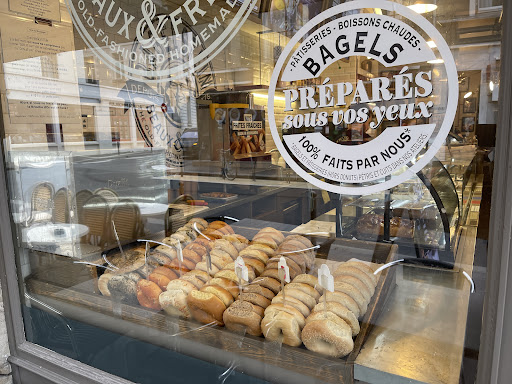 Read moreFranchement c'est pas mal mais ça casse pas non plus 3 pâtes à un canard ! Le concept est sympa avec la préparation sous nos yeux et les ingrédients exposés dans les bacs. Le bagel change du traditionnel sandwich ou burger. Ça à l'air propre et bien tenu. Le personnel est sympathique. Par contre c'est vraiment cher pour ce que c'est, 22 euros pour un repas (2 bagels frites et dessert, sans boisson)! Les frites étaient pas top, pas salées et minuscules genre reste du fond de friteuse (pas facile du tout à manger dans la boîte ...). Le bagel il me semble au poulet mais il a du être oublié ... Et la verrine pomme-caramel avec le spéculoos au dessus tout mou car c'était au dernier jour de date. Voilà j'ai testé, c'est bien -, ou moyen +, mais pas assez bon pour me dire que j'y...