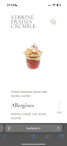 Read moreJe suis allée chez Feuilleté et j’ai pris une verrine “fraise crumble panna cotta”. Dès l’ouverture, une odeur très forte s’en est dégagée, ce qui m’a tout de suite surprise, d’autant plus que j’aime généralement ce type de dessert. Mes amis et moi y avons goûté, et nous avons tous eu une réaction de dégoût à en avoir des réflexes vomitifs.
