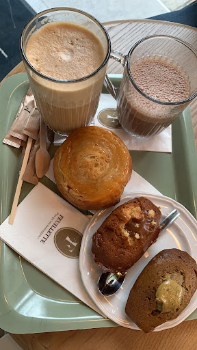 Ils nous aura fallu presque 2 mois pour pouvoir mettre un pied au Café Feuillette ouvert en cette rentrée 2024, tant la foule se presse pour consommer dans ce ''café tendance à l'américaine mais français''. Le week-end, impossible de trouver une place assise. Un comptoir double avec tabourets plus une quinzaine de places à tables, toutes prises d'assaut en permanence. Le lieu est agréable, à l'image du Feuillette de St Cyr mais en (beaucoup) plus petit. Rien à redire sur le cadre, pas plus que le service mais si les employés, des étudiants a priori, n'ont logiquement pas la coordination des employés de la succursale surnommée.