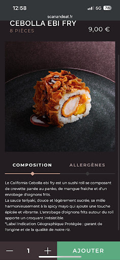 Read morePar le passé avec mon amie nous avions l’habitude de déjeuner régulièrement à côté sushis. Nous n’y avions jamais été déçue jusqu’ici. Nous sommes venues déjeuner pour 13h. L’ambiance était différente de celle habituelle. Nous nous installons, le serveur gentil mais un peu plante verte (pardon) nous refuse la carte papier. Nous nous contentons donc du QR code. Nous commandons des CEBOLLA EBI FRY. Qu’elle ne fût pas notre surprise quand on a vu la tête de l’assiette. Même nous sans aucune prétention quand on a fait nous même nos makis c’était mieux présenté. Les oignons frits ont littéralement étaient renversés dessus. On ne pouvait même pas distinguer la forme des makis en dessous. J’ai aussi pris des samba saumon. Le saumon était fade sans aucun goût avec une couleur douteuse, le goût du miel comment vous dire que je le cherche encore à l’heure qu’il est… À la fin du repas quand j’explique au serveur ma déception il me sort que la différence de visuel est due au fait que sur la carte les makis sont présentés à l’unité . Alors que ça n’a rien à voir. L’écart entre la présentation sur la carte et celle de l’assiette était aussi mensongère que la publicité du célèbre fast-food dont je tairais le nom… Je vous laisse en juger par vous même avec les photos. La prochaine fois nous irons au restaurant de l’autre côté de la fontaine je vous conseille vivement de...