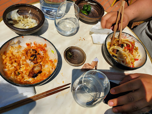 Un désastre ..... Je ne suis pas difficile , mais là je ne peux pas mettre un bon avis. Nous avons mangé un midi , trois personnes. Arrivés à 12h20 . Au bout de deux minutes on nous demande si on a choisi et la réponse est non. Trois minutes plus tard rebelote , toujours non , et la troisième fois on a commandé car je me suis sentie obligée même si mon choix n était pas réellement fait. Cependant j ai demandé si les nouilles au poulet pouvaient être en version non piquantes et non épicées . On me dit que oui. Je commande et les deux autres aussi. 20 minutes plus tard on nous apporte le repas . On nous donne des brochettes de boeuf non commandées. La cuisine les récupère mais on me les redonne" ce sera gratuit car sinon on les jette " .et il nous manque bien entendu les dernière brochettes demandées . Je goûte mes nouilles et là , atroce c est ultra piquant ( je pense que les poivrons sont marinés dans la sauce piquante . Impossible de manger . Je tente la viande ( poulet ) qui est moins épicée mais gélatineuse . Bref j ai laissé et demandé un bol de riz nature. Le plateau de 16 maki ( cebolla dream ) était noyé sous les oignons frits . Ils n avaient pas de goût et collaient tous entre eux donc impossible de les prendre individuellement sans qu ils ne se détruisent . Les autres brochettes étaient plutôt moyennes . Et au moment de payer on m a facturé ces fameuses brochettes " gratuites " qui n ont pas été mangées. Bref le point positif est que la salle est jolie mais l éclairage par contre est trop sombre . La propreté est moyenne ( ma carte était poisseuse et pleine de gras , mon verre avait des tâches suspectes ) , les toilettes sont propres mais la porte a du mal s ouvrir . La personne qui a pris la commande était expéditive et visiblement agacée ( l autre serveuse était parfaite et souriante). Bref je ne retenterai pas car 70 euros pour ce moment rapide est peu nourrissant je trouve que...