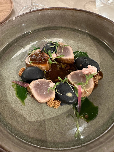 Recommended by a local staff member from our hotel, we booked a few days ahead for a Thursday night dinner. The place was pretty full but some empty tables, again it was Thursday. My wife ordered the eggplant cannelloni app with the veggie Gnocchi main. I ordered the gazpacho ceviche app with the saffron chicken main. Every single dish knocked it out of the park until we got to the chicken. In my opinion, the chicken should not be on the menu; it was a bit dry, some fatty, tendon-y bits that were not nice to eat. And the veggies and saffron sauce were ok. The polenta was the only saving grace of that dish. Maybe it’s on me for expecting more out of a chicken breast main dish. However, my wife said the gnocchi was the best she had ever had. I will say everything up to that point was Michelin-esque and so I would still recommend this place to everyone. Incredible service, super friendly, helping with wine pairings and even recommending bars for an after dinner outing. Really enjoyed this place and...
