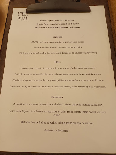 Read moreNous avons diné à L'idée hall avec mon conjoint, moment agréable mais nous avons trouvé que le rapport qualité prix n'était pas au rendez-vous.