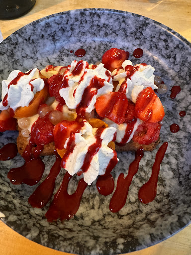 Without a doubt, this is a 5 star restaurant( . I mean this in a positive way) it felt like I was really in France eating Michelin star dinner. The young chef is excellent very creative. Everything was very tasty. The service was excellent. They even have English menus, which always makes me happy, I think Iâve been in France for a month and this is one of the top 10 restaurants that Iâve eaten at and I thought it was priced very fairly the special on the board which was salmon with a salad which was excellent for an appetizer, we had the tomato and cheese another winner we had the chicken dish with the pasta which was outstanding and then of course the dessert what a beautiful masterpiece and so creative. If youâre in the area, make sure you make reservations. It look like every table was taken btw the vegetables they had these little dishes and they were delicious in France they never make that many vegetables itâs usually a garnish this place did it very well and created So if youâre looking for fine, creative dining without the Michelin star prices I think youâre in for a...