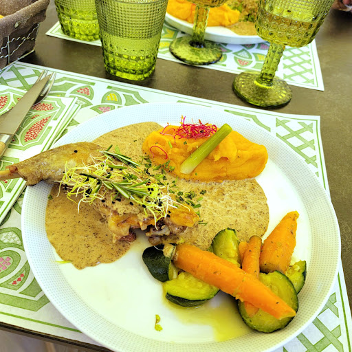 If you visit the castle of Villandry, it's well worth eating at the restaurant that's at the entrance of the castle. While the menu is extensive it is not fully available when you're there. However the few dishes that they offer at the time are excellent! We like to experiment new dishes when we can, so we had the Guinea Fowl thigh and leg; needles to say that the meat was tender and fell off the bone, the sauce was aromatic and mild and it was all cooked to perfection. If I had to guess I think the sauce had a hint of fennel. My partner had the beef carpaccio and he said it was the best he's ever eaten. I'm not a carpaccio lover but after the fuss he made, I had to taste it and have to say it was excellent! We were both amazed that the beef was sliced thicker than what you usually get at...