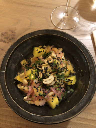 Points négatifs : Très très peu de choix. Aucun repas chaud sauf la soupe miso. Ce n’est pas des plats de résistance mais plutôt des entrées. J’ai pris une salade de crevettes à la mangue faute de mieux. Pour 17€ et un petit bol c’est quand même très cher payé. La mangue n’était pas de qualité ( sûrement mangue en conserve ou Espagne). Nous étions trois et une de mes amies a du commander deux plats et elle avait toujours faim à la fin du repas. Si vous voulez une collation c’est très bien mais sûrement pas un repas de quantité normale. Toutes les trois on s’est jeté sur le pain. Moi qui ai un appétit d’oiseau je suis également restée sur ma faim. Je ne regrette pas cette découverte mais je n’y retournerai certainement pas, mes amies non plus l’ont-elles dit.
