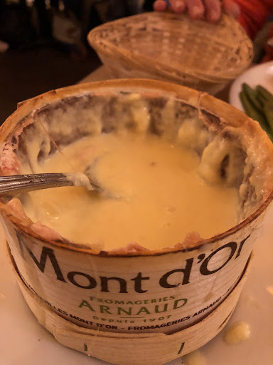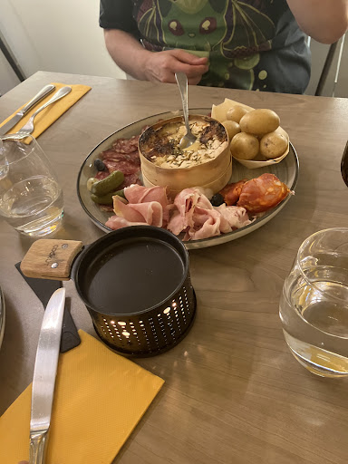 Le serveur a pris rapidement notre commande : fondue d'Auvergne excellente et assiette de charcuterie de bonne qualité et plutôt bien fournie pour 3.50€. Pour le dessert nous nous sommes laissés tenter par un bon dessert meringué coulis de fruits rouge et une très bonne crème brulée. Le patron a deviné l'envie de dessert de notre fille et on lui a très rapidement servi une boule de glace au chocolat.