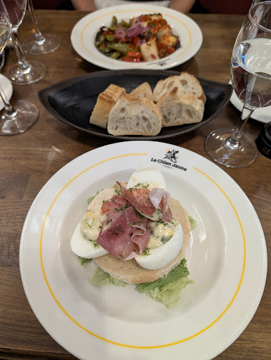 Read moreOn one hand, food is nothing to right home about. We ordered the burrata as a starter to share (turns out it was a sort of burrata mousse?) and the full chicken which unfortunately was not warm enough (meat lukewarm and the stuffing was straight out cold). The staff was prompt to rectify by warming up the meat again but didn't bring us the stuffing back. When in the right temperature, the chicken was excellent.The profiterole was unfortunately too cooked, almonds too toasted and choux hard to cut at places. On the other hand, the staff was lovely, happy to help when choosing wine and generally very reactive. The place itself is cute and has a little terrasse. The decor is fairly authentic. Shame the food turned out the way it did, as all the rest...