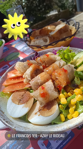 Read moreBien situé mais l'offre de restauration ce jour est limite. Nous optons pour 3 salades complètes à 13€ pièce, et après 15mn on nous amène 1 assiette tapissée de salade iceberg, parsemé de maïs, tranches de tomates insipides alternes avec tranches d'oeuf durs et 2 tranche Fine de jambon crul e tout arrosé d'une sauce de salade industrielle. On demande du pain, on nous répond qu'il n'y en a plus car la veille "journées du patrimoine " !! Bref, je me lève et je vais acheter 1 baguette à la boulangerie 20m à côté et revient à table. Remarque est faite au responsable et réponse : "nous on n'achète pas de pain" . Je pense qu'Azay le Rideau mérite...