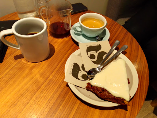 We had pea and goat cheese quiche and a cinnamon roll and a chocolate chip cookie and it was all delicious. Indie coffee shop vibe and a healthy respect for tea drinkers - the Earl Grey was very nice. (How can I get the French to know that the tea bag goes in the cup before the water? ...been trying for two weeks....)