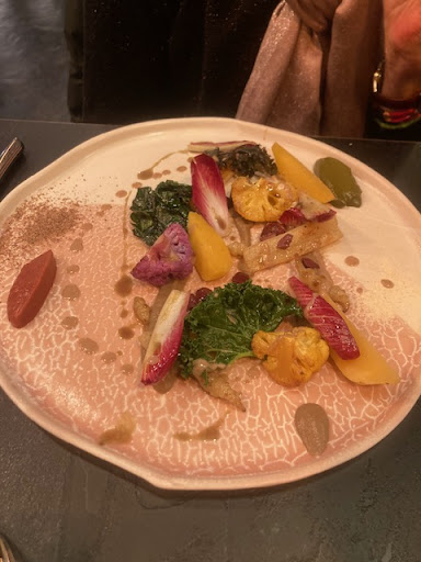 Les légumes sont sans conteste la force de frappe de notre chef car le cabillaud aurait mérité à peine 2 minutes de cuisson en moins alors que les accompagnements sont une belle interprétation du potager.