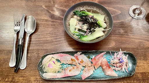 An exceptional evening with the most delicious sashimi I ever had, including Japan. A fantastic French-Japanese creation! Fish, ever so lightly seasoned with lime and hints of ginger or maybe just a fantasy of it… Very good wine from the region, attentive and friendly service and a charming atmosphere in this artsy, partially troglodyte den. I wish I could come...