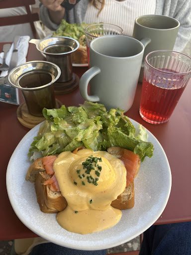 Read morethe service is very kind and gracious, switching between french and english so i could understand. the atmosphere is super cute, too. however, the food and coffee were disappointing. the iced latte didn’t have ice, first of all, but the actual coffee was horrendous. it was likely drinking slightly brown, kinda warm milk. the ratio of espresso to milk was diabolical, as you can see by the lightness of the latte in the photo. the rest of the meal was okay. the tartine aux legumes was fairly bland and under seasoned, but not terrible. the salad dressing was the most exciting part of the meal. the pecan cookie was not too...