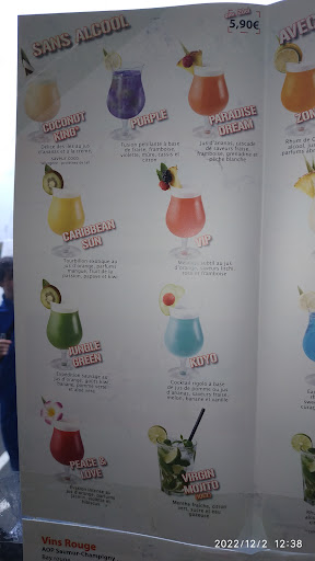 Aucun prix affiché sur le set de tables et aucun prix affiché sur la carte de cocktails