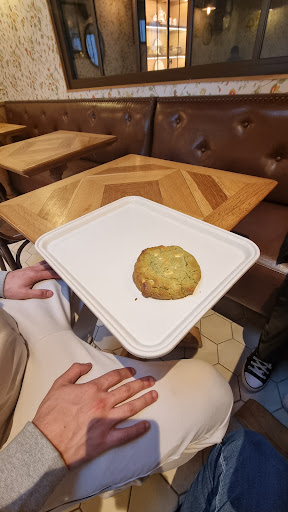 Et oui, on ne s'arrête pas là, dans le domaine de l'incompétence, on peut toujours faire pire ! Un autre de mes collègues avait commandé un cookie... Comment vous dire que sur son plateau, c'était plutôt un véritable space cake tout verdâtre qui s'est retrouvé sous nos yeux, évidemment jeté sur le plateau comme la soupe de la cantine du collège et ça sans serviette, ni assiette, RIIIEN.