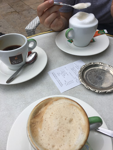 During the fifteen minute wait for the waiter to bother to talk to us, we had plenty of time to watch the staff at work. The waiter wears his mask under the chin and never wipes the tables when clearing them, when he bothers to clear them! All four tables around us had remains of people's breakfasts sitting in the sun, with wasps coming to investigate.