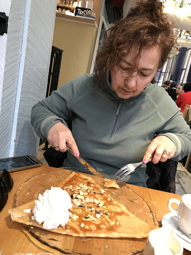 Read moreGlad we stopped here for a sweet treat. Wonderful crepe combinations with different flavours of ice cream, fruit, whipped cream and syrup. The coffee with caramelised pear and pear ice cream was brilliant. Recommend vanilla with Nutella or chocolate with cherry crepes. Wines available by the carafe. Good savoury options too, the ham, cheese and mushroom omelette was simply delicious. Very welcoming staff and lovely location to...