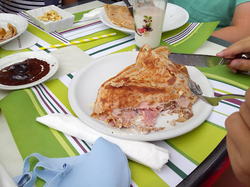 Que vous optiez pour une version sucrée ou salée, c’est une explosion de saveurs. Les crêpes sont garnies avec des produits locaux, garantissant fraîcheur et authenticité. La pâte à crêpes, élaborée à partir de farine de sarrasin et de blé produite en bio localement témoigne de leur engagement envers des ingrédients de qualité. Dès que vous franchissez la porte, vous êtes accueilli chaleureusement. L'équipe vous laisse le choix de vous poser tranquillement sous la terrasse ombragée ou à l'intérieur dans un bâtiment en pierre, bien au frais Un emplacement pratique et un cadre pittoresque. Des produits frais et de saison. La patronne n'hésite pas à vous garantir la provenance des légumes et pour cause, ils proviennent directement de chez sa sœur,assurant ainsi une garantie.. fraîcheur. Une certaine approche des producteurs locaux pour des prix raisonnables pour tous. La qualité exceptionnelle des produits ne fait pas flamber la carte . Un endroit où même les bons vins sont servis au verre ou au pichet . Nous sommes dans une région où le bon vin est présent, le patron n'hésite d'ailleurs pas à vous en parler. Une halte très agréable, des hôtes (patron et personnel) tellement accueillant et sympathique on y revient avec...