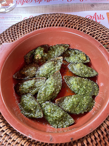 Read moreNa een wandeling om Essoyes streken we neer op het terras van La Guinguette des Arts. Wij (mijn man en ik + onze golden retriever) werden in eerste instantie moeizaam onthaald. Honden mochten niet naar binnen. We wilden sowieso graag buiten zitten en na een paar overpeinzingen mocht dat toch. De man die ons vervolgens kwam bedienen was ontzettend aardig en attent. We aten het menu gourmet (35âŹ) en dat was heerlijk. Bij de tonijnsteak waren âseizoensgroentenâ beloofd, maar de enige groente die erbij zat was één plakje tomaat. Verder is het terras een fijne plek om lekker rustig van een hapje en drankje...