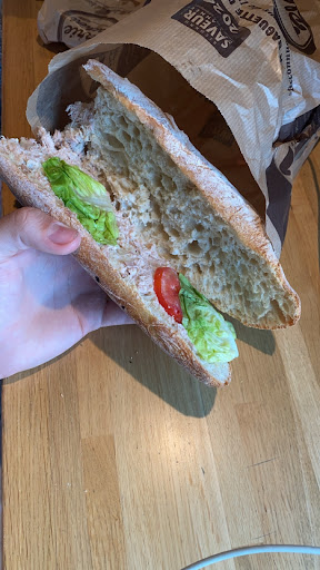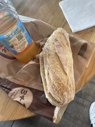Read moreBien qu’on m’ai conseillé cette boulangerie, celle-ci ne m’a point convaincu, et pour plusieurs points. Premièrement impossible de prendre une leur offre car leur produit n’était plus en stock alors qu’il n’était que 12h, ça n’aurait pas été embêtant si cela était affiché. J’ai donc choisi un sandwich thon crudités, et après l’avoir entamé, je me suis rapidement rendu compte de l’absence de crudités. C’est a peine si les 4 petits bouts de salade ce bâtait avec les tranches de tomates. Pour le positif je ne peux pas retirer le qualité du pain, et le fait que ce ne soit pas chère. Mais je pense sincèrement qu’avec mon de guêpe et des serviettes donner, mon expérience au sein de votre établissement aurait pu déjà être bien meilleur. Je vous souhaite de corriger c’est petit défaut pour que cette enseigne soit a l’image du groupe...