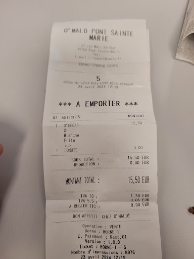 Read morePremière fois que l'on me dit dans un fast-food impossible de changer la sauce dans le sandwich c'est sauce blanche ou rien d'autre, taille du sandwich ridicule, composé essentiellement de laitue 2,3 morceaux de légumes provençales en conserves, 50g de broche industrielle et une pseudo fêta comme vous pouvez le voir. 30 minutes d'attente pour la pauvre commande du ticket en photo et quand on demande gentiment est-il possible d'échanger nos sauces ketchup mayo mise d'office avec les frites par une sauce algérienne bbq on nou répond 50cts sup. On rétorque OK je paie en Cb non c'est 5€ mini. Toilettes verrouillées a clef ou le client doit gentiment les ramener au comptoir après niveau hygiène ya mieux. Au lieu de demander au client de faire le 3sses des WC ils feraient mieux de les nettoyer tout comme les poubelles pleines à craquer, sans vou parlez de la froideur de la demoiselle à la caisse obligée de prendre les commandes car 1 des 2 seul panneau de commande était en panne. Je ne recommande pas ce...
