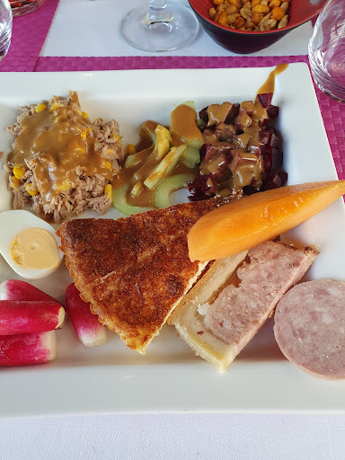 J'y retournerai, c'est sûr. Belle salle, propre, serviettes en tissu, service parfait. Prix très raisonnable. Buffet des entrées pas immense mais beaux produits frais et variés, très bien. Plat copieux et très bon. Dessert : profiteroles. 2 choux énormes ! Sauce chocolat : vrai chocolat fondu, pas de la sauce chimique, évidemment délicieux ! Je n'ai jamais vu aussi belle assiette. Goût perso, je n aime pas trop cette marque de café. N oubliez pas de réserver, nous n avions pas pu y déjeuner faute de...