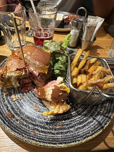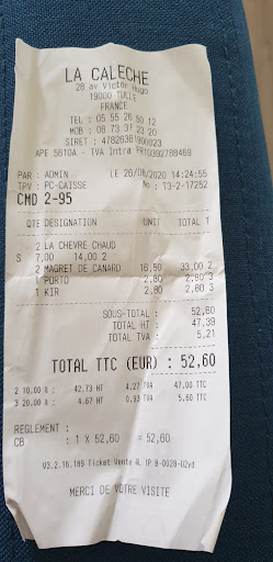 Read moreBonjour, Parisien partant de plaisance du gers remontant vers nevers pour déposer un ami, le samedi 5 mars 2016 , pour finir par paris. Bref , LA CALECHE est un endroit sympa , aménagement bien pensé . Mais surtout , dans le quartier de la gare , C EST LE SEUL QUI RECOIT BIEN SES CLIENTS meme avec un blouson du stade francais , a qui est cappable de nous faire a manger ....car autour , 13H40 YA RIEN , je suis serieux !!! nous avons fait 2 restaux avant eux , hé bien ...RIEN , NADA plus à boufffer . oui je fais mon parisien de base habitué a manger a n importe quelle heure ...mais franchement rien trouver à 13h40 . Bon revenont à LA CALECHE la formule est sympa, les serveurs commerçant ( le menu comporte une vittel , on peut echange par un café, oui bien sur !) salade de chef sympa , bien garnie , steak genereux ( viande limousine au dire du serveur), frite congelées mais bien cuite , Dessert bien sans plus , tout a fait mangeable. musique d ambiance pas trop forte+ un mach de rugby a la...