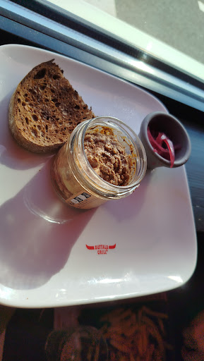 Comment dire que j'ai déjà fréquenté des restaurants de toute sorte mais que c'est la première fois que c'est une tel catastrophe... Prise de commande sans sourire, très hésitante et confuse. Nous étions 4. On apporte l'apéritif à mon père en même temps que les autres boissons ... et que l'entrée. On t'il compris le principe d'un apéritif ? Ensuite, nous avions 3 entrées chaude et une entrée froide (la mienne) qui s'avérait être une terrine de bison. Outre le fait que je m'attendais à une belle tranche de terrine, dans une assiette avec des cornichons, des pickles, peut-être un peu de moutarde (je n'oserais dire au miel), je ne fut pas servi tout de suite. Les 3 entrées chaude arrivent et moi ... rien et pas d'information. Finalement, on me l'emmène en meme temps que mon plat (c'est sublime comme c'est débile) et pour avoir quoi? Je vous laisse voir la photo : une grande assiette blanche, un bocal de terrine industrielle avec l'étiquette, une demi tranche de pain (très) grillée et un pincée de pickles d'oignons rouge. Du foutage de gueule à l'état brut, sans filtre et avec le "bon appétit" qui va avec. Si quelqu'un peut m'expliquer comment je suis censé manger un bocal entier de terrine avec une demie tranche de pain.... Avec une présentation pareil, j'ai éclaté de rire. Et donc, en même temps que mon plat, très pratique. Une côte de boeuf rachitique, sans AUCUN goût. Mais réellement, aucun goût. Je n'avais jamais vu ça. Je me répète mais c'est pour marquer la chose. Une sauce béarnaise froide réchauffer au micro onde qui avait trancher. Mon père a eu un verre de vin rouge éventé depuis pas mal de temps et donc imbuvable. On lui a changé pour un verre de vin rouge : froid. Conservé en chambre froide. Ajoutez à ca : un service laborieux (pas de pain alors que nous l'avons demandé 3 fois pour finalement avoir des petits pains congelé blanc, à peine cuit), une attente indécente, des prix exorbitant !! Une vaisselle sale et nous avons une expérience terrifiante, à éviter absolument. Fuyez et allez vous chercher un beau morceau de boeuf chez votre boucher : ce sera - cher et bien...