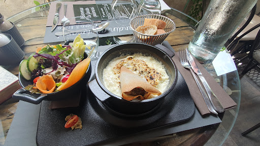 Read moreLe lieu en lui meme est tres beau et agreable (belle terrasse, salle decoree avec gout). Accueil correcte, serveuses plus agreables et souriantes que la patronne cela dit. Pour le repas en lui même, j'ai été un peu déçu : bon mais qualité identique à ses voisins pour un prix plus important (ravioles gratinées au bleu : ravioles, crème, bleu), petite touche intéressante la morceau de caillette dans une feuille de brique (mais plat globalement pas vraiment "cuisiné") mais chose franchement peu commerçante, il faut payer un supplément de 3€ si on souhaite un peu de salade verte avec ses ravioles (!). Pour le dessert, je suis tombé des nues (j'ai oublié de le prendre en photo)... le vacherin était médiocre : une chantilly en bombe bon marché, une grâce à l'italienne à la vanille qui aurait pu être originale mais qui était d'une qualité identique au machine de bord de mer (c'est à dire de la poudre et de l'eau), une meuringue classique nappée de coulis framboise (au moins lui à l'air d'être fait maison...). Biensur sur le papier tous les ingrédients étaient présents mais voilà la qualité et aucun "travail", chaque élément posé l'un à côté de l'autre le tout pour un prix de 9€ !... j'ai egalement vu que si nous prenions un apéritif, nous avions un petit contenant de pop corn salé, j'ai pris un apero mais déjeunant seule, ils ont dû penser que je n'avais pas besoin de grignoter avant mon repas... bref, je ne conseille vraiment pas...