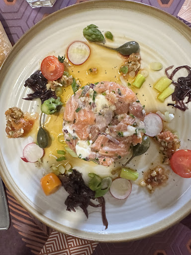 Read moreUne cuisine savoureuse réalisée avec des produits frais, de qualité et bien assaisonnés. Saveurs aux rendez vous dans les assiettes. Bémol sur l'assiette du Mac pierrot, pas de frites de patates douces comme annoncé à la carte mais des allumettes trop cuites pour accompagner le Mac. Dommage, cela aurait été plus agréable à déguster.. Petit bémol, Début de soirée avec un accueil à l'arrivée un peu froid.., le cadre peu agréable à la terrasse manquant de charme, pas le choix sur l'emplacement de la table et même en arrivant tôt, l'odeur de fioul par moment, mauvais jour certainement, a été écourté par la pluie permettant de découvrir l'intérieur de l'auberge plus agréable que l'extérieur en étant plus chaleureux mêlant modernité et ancien. Le reste du service a été plus plus agréable et apprécié. Clin d'œil pour célébrer un anniversaire avec des bougies sur les desserts apprécié !