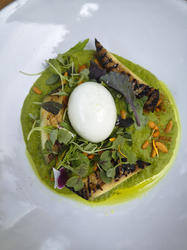 Read moreDe passage a Valence, l'envie nous est venu de visiter l'institution qu'est la maison Pic. C'est donc enjoués que nous nous rendâmes au bistrot André, afin d'avoir un avant goût de ce que la cheffe a à offrir. Dès l'entrée dans le restaurant, qui est situé au meme endroit que l'hôtel et le 3*, nous fûmes impressionnés par l'architecture et le petit écrin de verdure qu'était la cour intérieure. Malheureusement, premier hic, pas de vestiaires dans le restaurant. Pour la carte, elle est simple et épuré, un menu déjeuner a 49€ entrée plat desserts avec deux choix par plats : nous choisissons de tester chacun d'entre eux. Le service, agréable et professionnel, nous fait ressentir rapidement le sérieux accordé à ce bistrot. Les entrées arrivent, service d'un sauce aqueuse melon gingembre, très subtile selon les dires de la serveuse : elle l'était, cependant le reste du plat n'était rien d'autre qu'une salade melon pastèque feta. Un peu déçu. Pour l'autre entrée, c'est déjà plus recherché, tant pas la fraîcheur de la courgette grillé que les épices indiennes adjointes au plat, mais il manque quelque chose. Une touche pimentée qui vient réveiller le tout, une acidité tranchante, ou meme une pointe d'amertume ? On reste sur notre faim. La suite reste dans cette lignée réconfortante mais sommes toute assez plate. La volaille était bonne, croustillante grâce au crumble, la sauce diable nous ramène dans un temps anciens, mais même constat, des goûts pas très franches ni percutants. Il en va de même pour le lieu jaune, qui, bien que nacré à la perfection, déçoit, la piperade en dessous est bonne et réconfortante, mais trop huilée (et pourtant je suis un fan absolu de gras), la sauce vierge n'apporte ni fraîcheur ni acidité, en bref, un plat vraiment classique. Arrivent enfin les desserts qui eux dénotent très franchement, tant par la présentation très soignée que dans l'accord. Le vacherin allie une meringue délicieusement craquante à une chantilly légère au goût aigre enivrant. Le tout est cassé par une jolie acidité des baies, à laquelle est ajoutée la vivacité de l'agastache et de ce délicieux sorbet mentholé, une vraie réussite. Pour la tarte aux figues, la tuile sur le dessus n'apporte rien de flagrant si ce n'est que c'est joli et a la mode de faire des tuiles de feuille dans des moules en silicone, cependant le dessert est bien équilibré, la compotée de figue acidifié avec un peu de vinaigre, le goût torréfié de la merveilleusement glace à la noisette rehaussant le tout. En bref, une franche difference d'accord et de justesse entre le sucré et le salé. Pour le reste, nous pûmes visiter le somptueux lobby de l'hôtel en suivant les anecdotes d'une des employés de ce dernier, une fin de repas tout de même très agréable. Nous reviendrons, mais pour le restaurant...