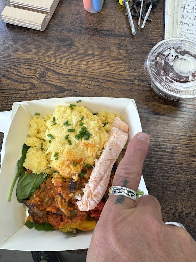 Lieux sympa, beaucoup de choix en semaine du lundi au jeudi. Un peu moins le vendredi si on arrive tard, normal car fermeture le week end. Possible de commander en click collect. Plat très bon et cuisiné. Le bémol qui me déçois c'est de devoir lire les ingrédients car certains produits bourré de sucres et additifs.. J'ai été déçu par les mini sandwichs par exemple avec des colorants conservateurs sucre et sirop de glucose..Dommage de nous vendre ça car c'est trompeur, on peut penser que c'est fait sur place sauf que ce n'est pas le cas... Pour conclure c'est bien mais il faut quand même se méfier de ce que l'on prend et lire les étiquettes comme pendant les courses....