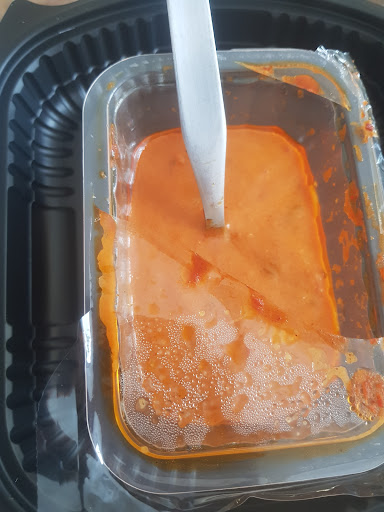 Read moreCommande en livraison butter chicken de 11e qui coûte 14e en livraison (frais de livraison) reçu sans accompagnement, pas de riz, alors que ca se mange avec du riz Je nai reçu que la sauce et la viande, qui consistait en une petite barquette à fritte avec 4 morceau de poulets perdus dans la sauce Pour plus de 11e jai reçu la moitié du plat. Apres avoir appelé le restaurant je n'ai eu aucun geste commercial de leur part Non mais d'où je viens là culture indienne est importante et entre nous ils savaient très bien que lorsqu'ils m'ont envoyer juste de la sauce et 4 morceaux de poulet dedans il manquait la moitié du plat et que ça se mange avec du riz. Et allez imaginons il y a une région en inde ou ca se mange sans riz et que chez moi on se trompe pour diverses raisons, je ne pense quand même pas que dans ce cas il faudrait envoyer seulement 4 morceau de poulet pour 11e sur place et 14 en livraison. Sur la photo ca se voit pas mais la petite barquette en longueur et a peine plus longue qu'une largeur de main Il y a plus à manger dans un...
